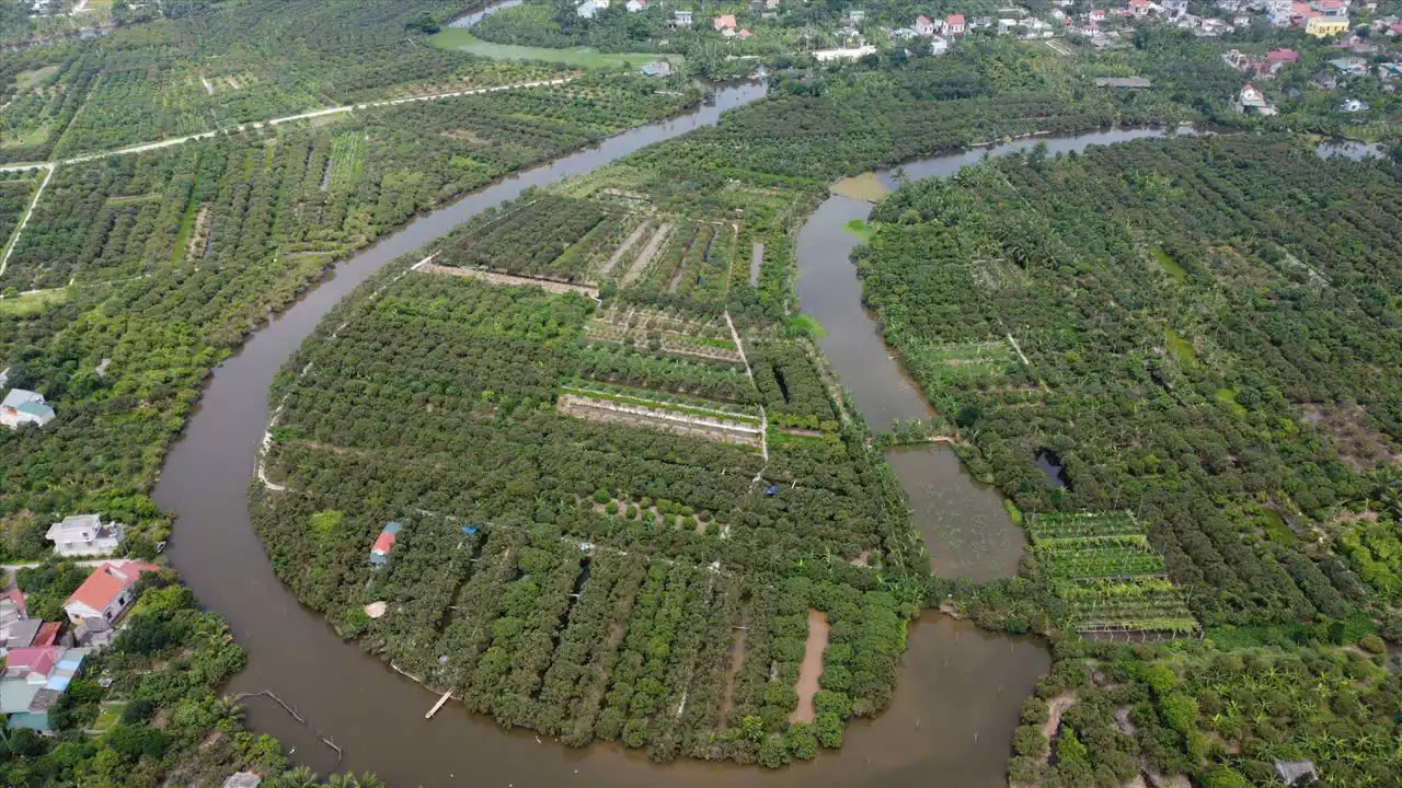 làng truyền thống cổ kính, nằm giữa cánh đồng cây trái bao la, với những con