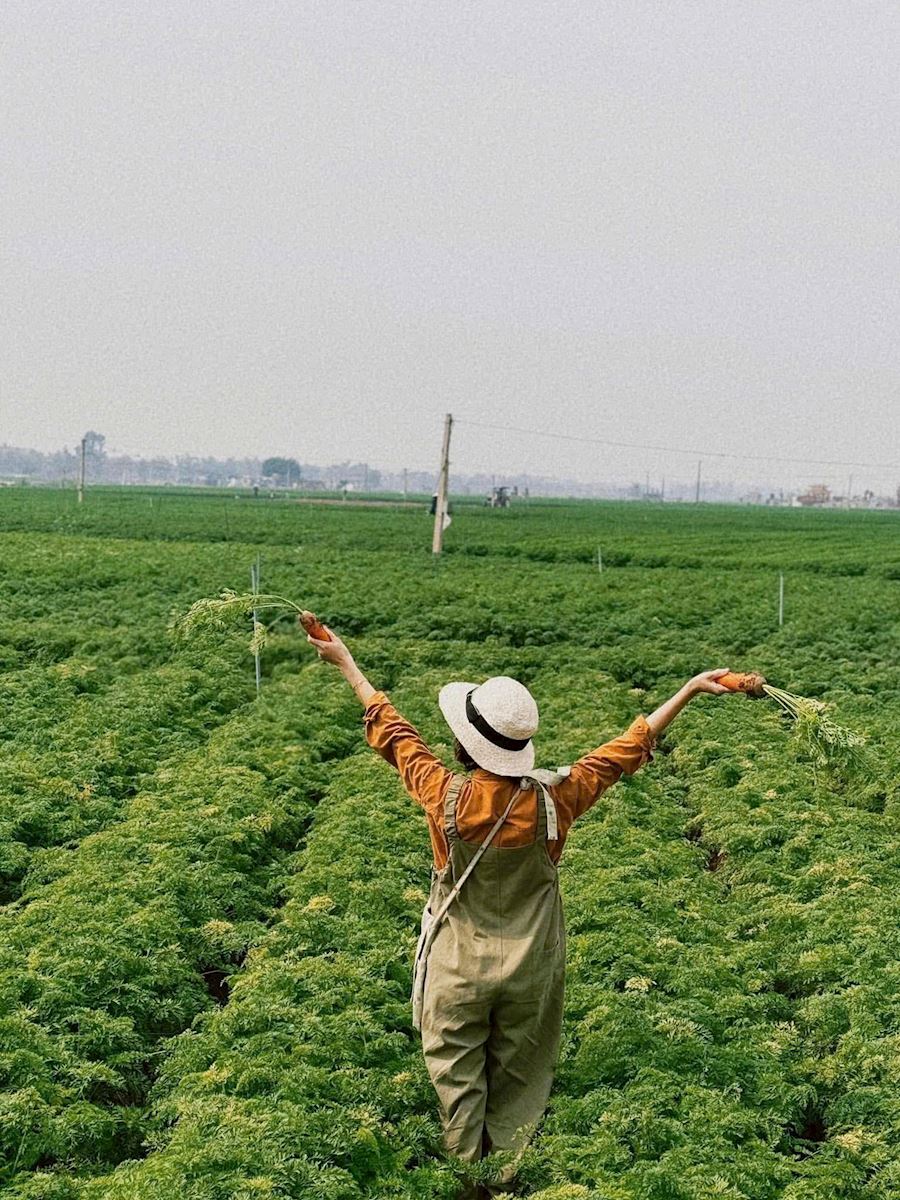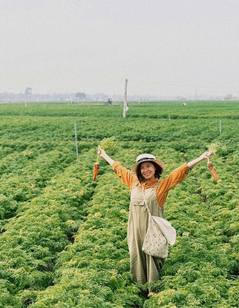 Cách trung tâm thành phố Hải Dương khoảng 7km ( 15 phút chạy xe) là thủ phủ cà rốt lớn nhất miền Bắc. Năm nay cà rốt thu hoạch muộn hơn 1 tháng nên sau Tết vẫn còn các cánh đồng xanh mướt thẳng cánh cò bay. Toạ độ để các chị em có những bức ảnh mang phong cách đồng quê, mang đậm bản sắc quê hương.